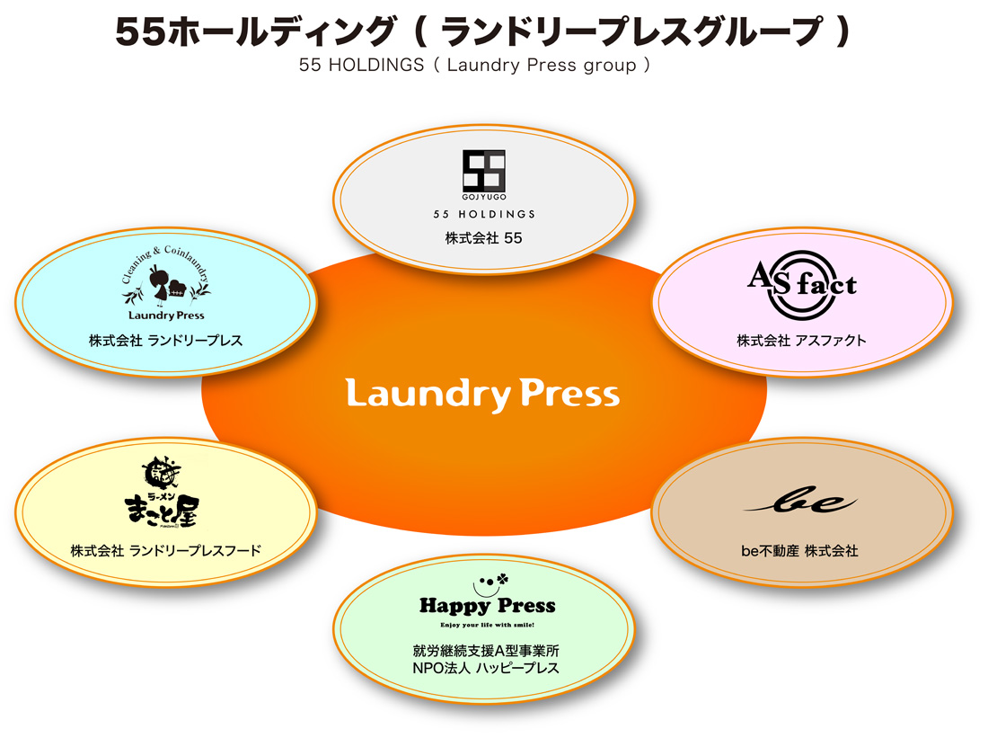 ランドリー機器の販売、その設備や環境のご提供、コインランドリー店舗の開発、自社クリーニングサービスなど業務用の洗濯に関わる仕事を通じて、多くの企業様と店舗のお客様にご支持を頂き、沢山の経験をさせて頂きました。ランドリープレスは創業して20年。これから先、私たちができることは何か?そうした想いを形にする段階となり、株式会社55(ごじゅうご)は、グループ全体の成長の中心となって歩みはじめることになりました。